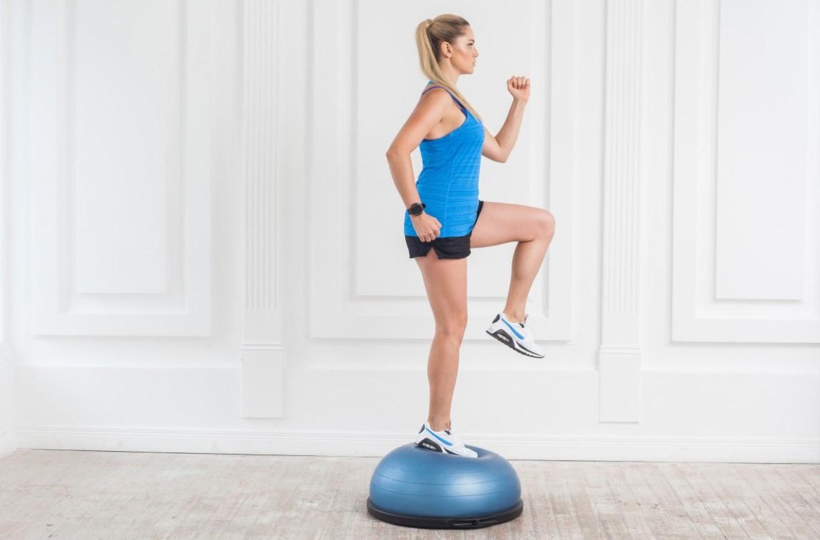 Rehabilitacja mięśni stopy na pół piłce BOSU powoduje poprawę siły mięśni nadwyrężonych przy skręceniu stopy oraz usprawnia czucie głębokie w stawach stopy i stawie skokowym. Ćwiczenia te zapobiegają nawykowym skręceniom stawu skokowego.