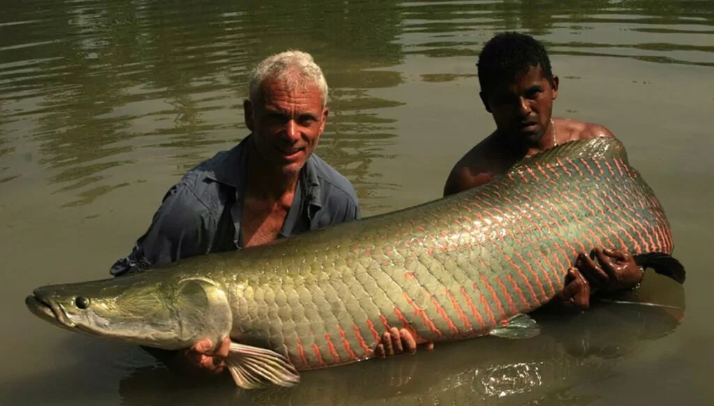 Pirarucu to jedna z największych ryb słodkowodnych na świecie – dorasta do ponad dwóch metrów długości i osiąga wagę przekraczającą 200 kilogramów.