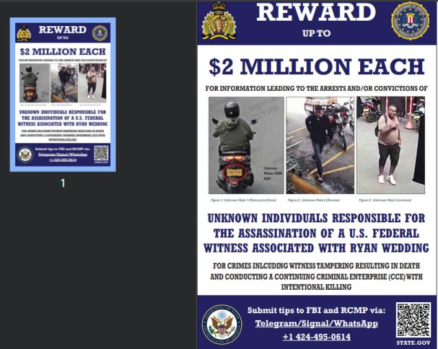Śledczy twierdzą, że Wedding i jego współpracownik Ryan Clark świętowali zamach, przesyłając sobie zdjęcia ciała za pośrednictwem zaszyfrowanej aplikacji. Trzech podejrzanych o bezpośrednie wykonanie zabójstwa nadal pozostaje na wolności.
