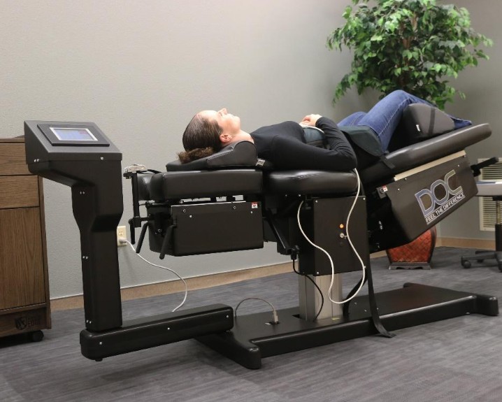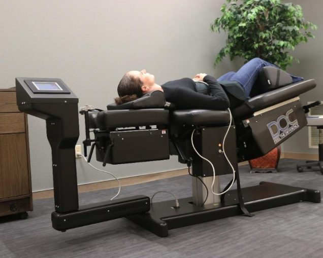 Dekompresja szyjna wykonywana przy użyciu profesjonalnego, komputerowo sterowanego stołu typu DOC (Distraction Osteogenesis Computerized table).