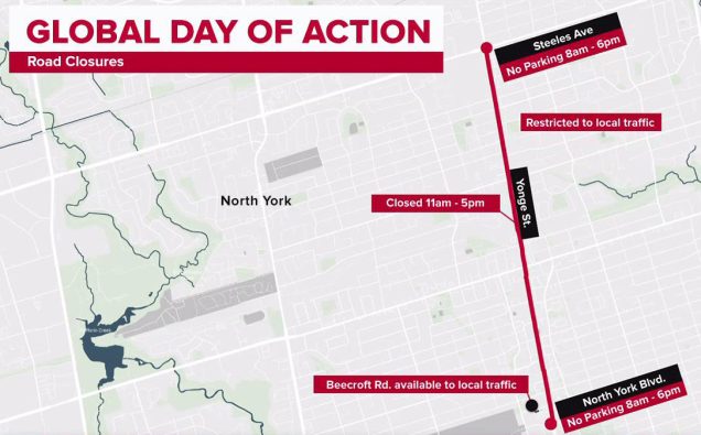 Marsz o długości 3,8 km przejdzie na południe ulicą Yonge Street – od Steeles Avenue do North York Boulevard. W związku z wydarzeniem Yonge Street zostanie całkowicie zamknięta w godzinach 11:00–17:00. Ruch na okolicznych ulicach będzie ograniczony do dojazdu lokalnego.