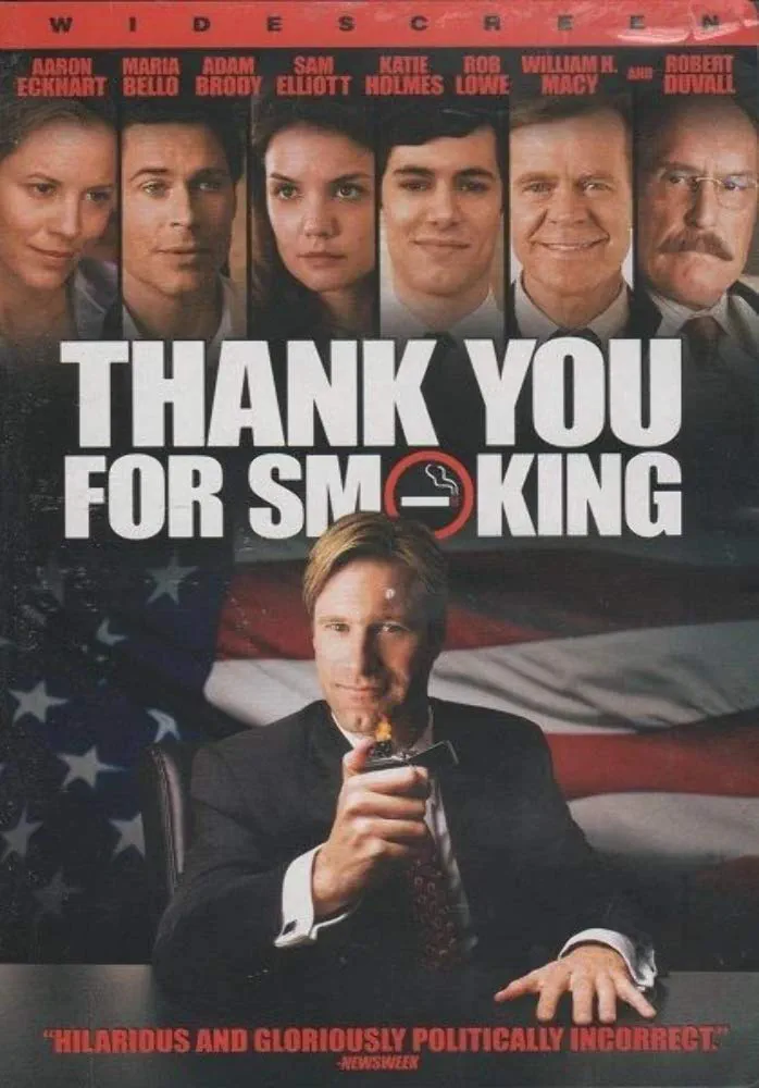 Plakat z filmu “Thank you for smoking” pokazującego wartości wolności obywatelskich
